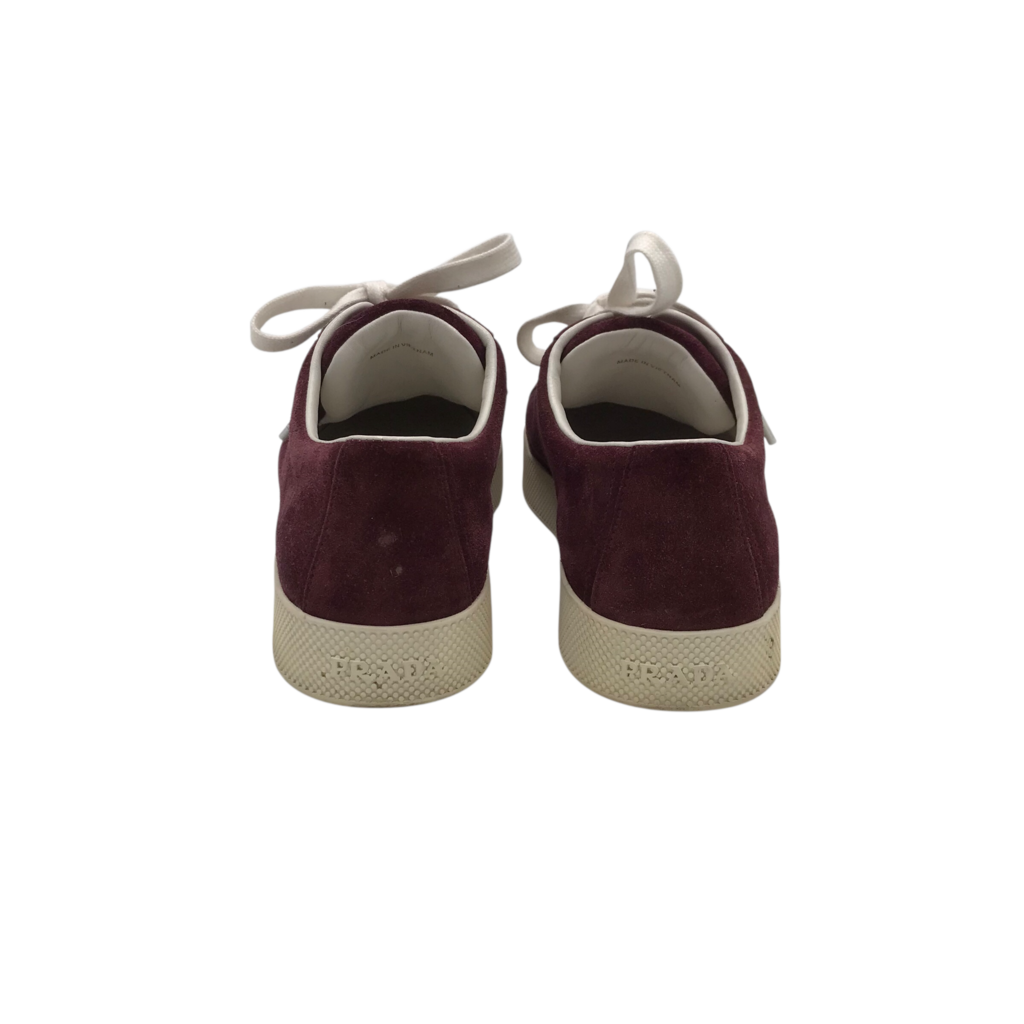 PRADA SUEDE SNEAKERS LUXE SHOES BURGUNDY 39.5