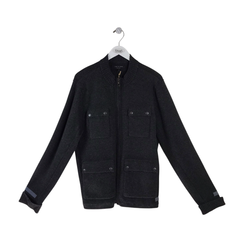 RAG & BONE NWT WOOL KNIT ZIP UTILITY MEN JACKET COAL LARGE