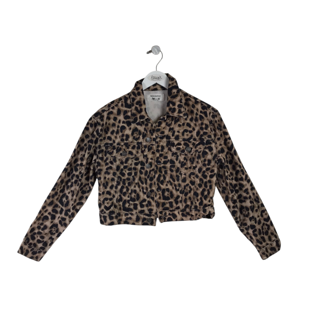 REFORMATION ANIMAL DENIM DESIGNER JACKET TAUPE BLACK MEDIUM