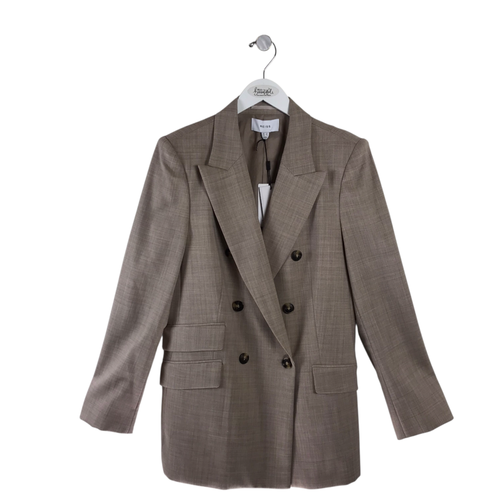 REISS NWT$515 WOOL BLEND DOUBLE BREASTED DESIGNER BLAZER BEIGE 8