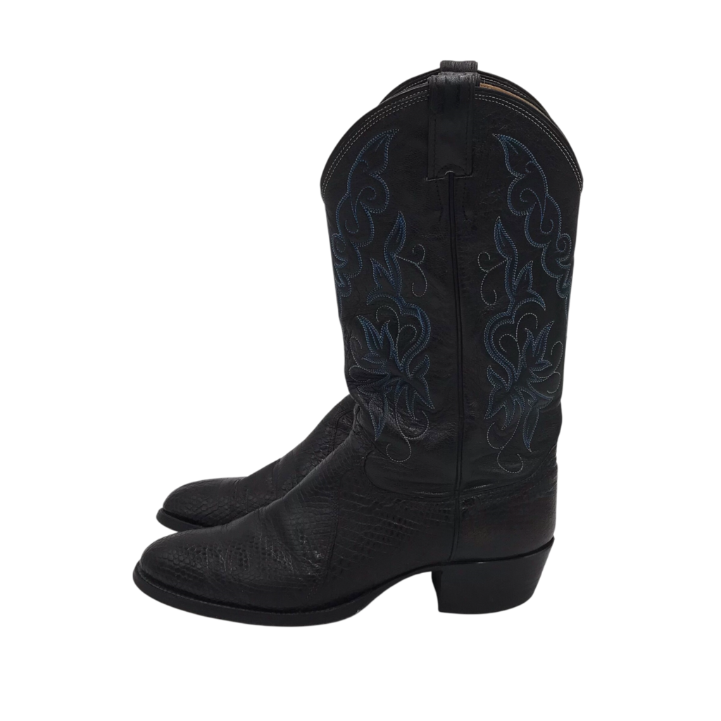 RET$545 LIZARD LEATHER WESTERN MEN BOOTS BLACK BLUE 9.5