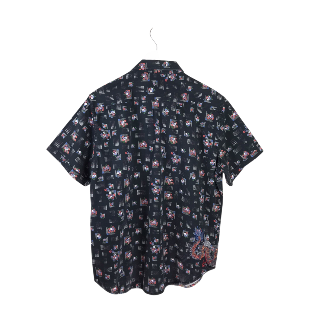 ROBERT GRAHAM FLORAL SHORT SLEEVE MEN SHIRT BLACK RED LARGE