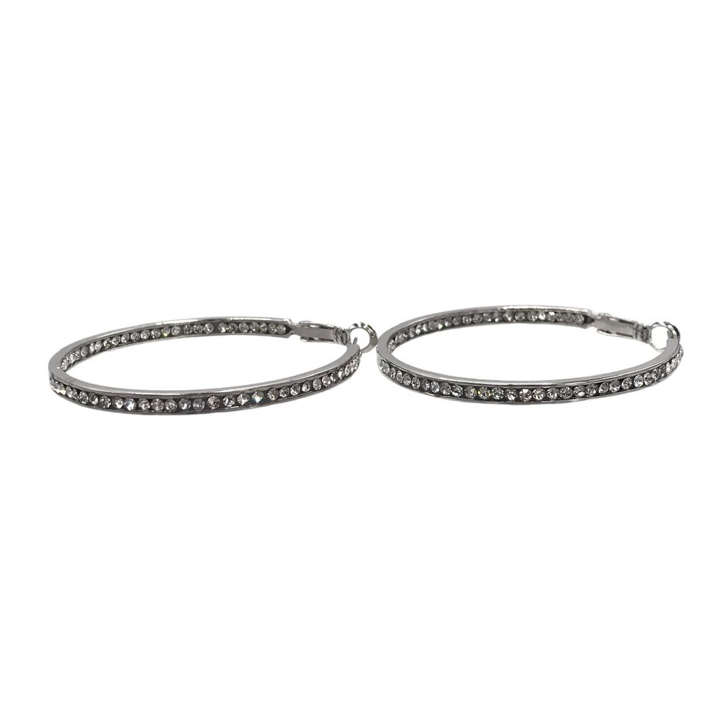 ROUND CZ EMBEDDED HOOPS EARRINGS SILVER LARGE