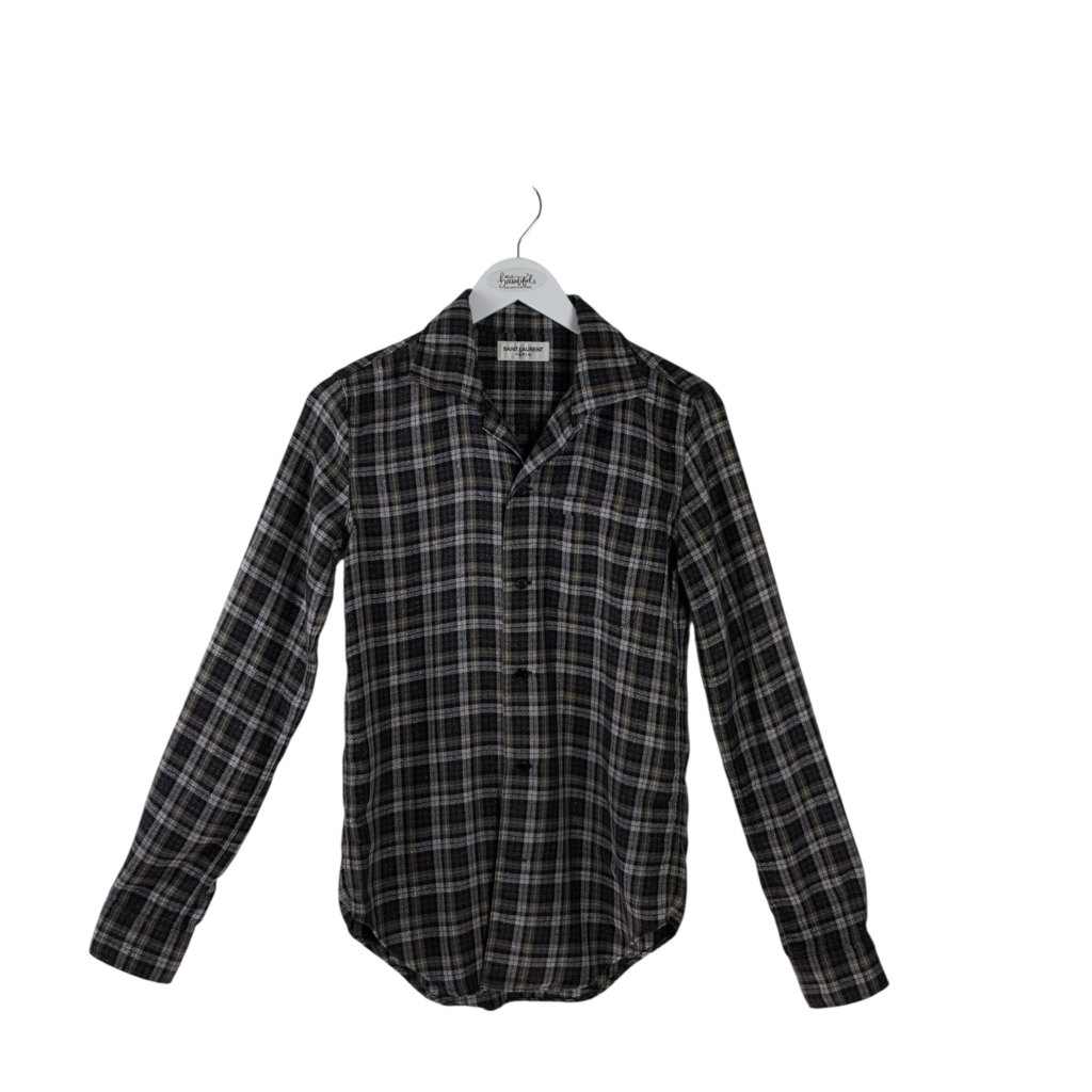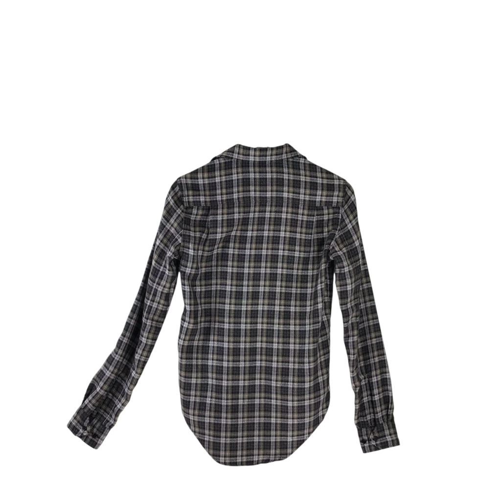SAINT LAURENT METALLIC PLAID BUTTON-UP LUXE TOP GREY/BLACK SMALL