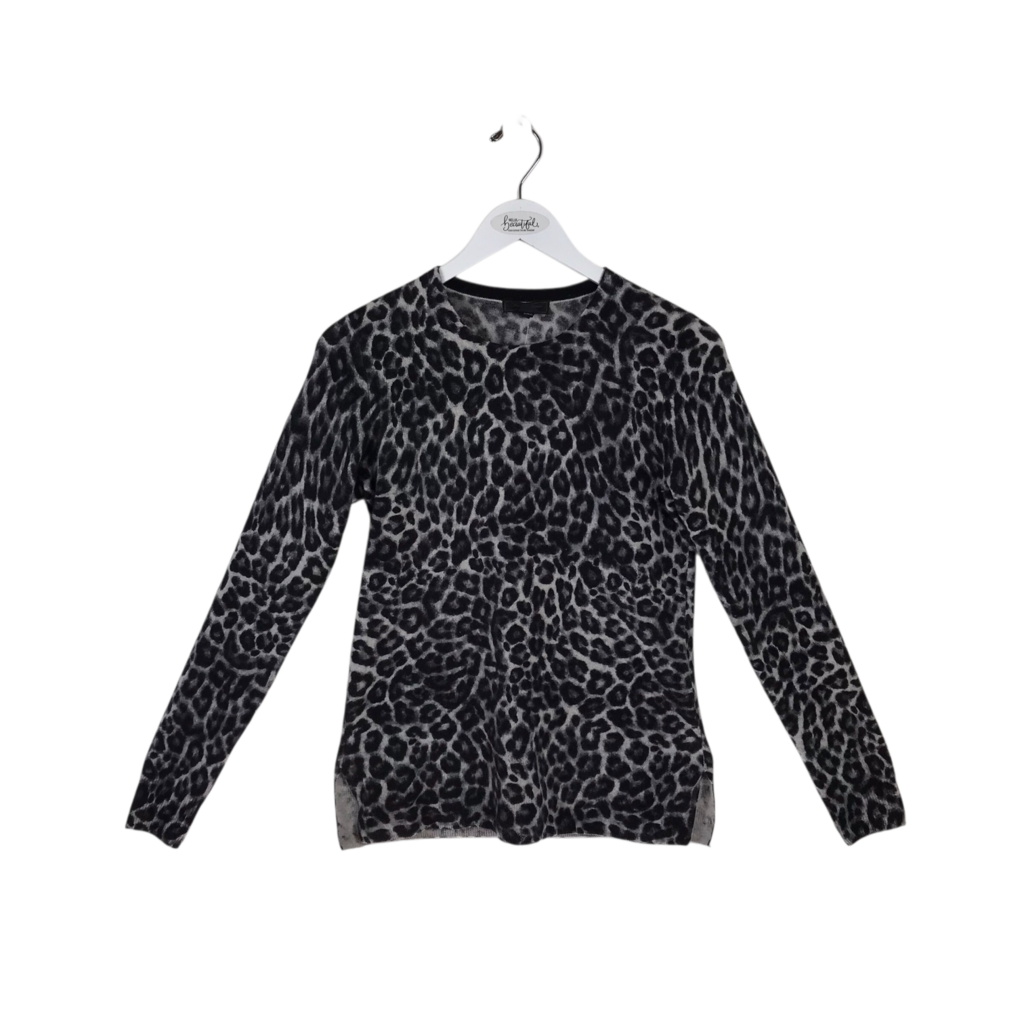 SAKS FIFTH AVENUE CASHMERE ANIMAL LS DESIGNER SWEATER BLACK GREY SMALL