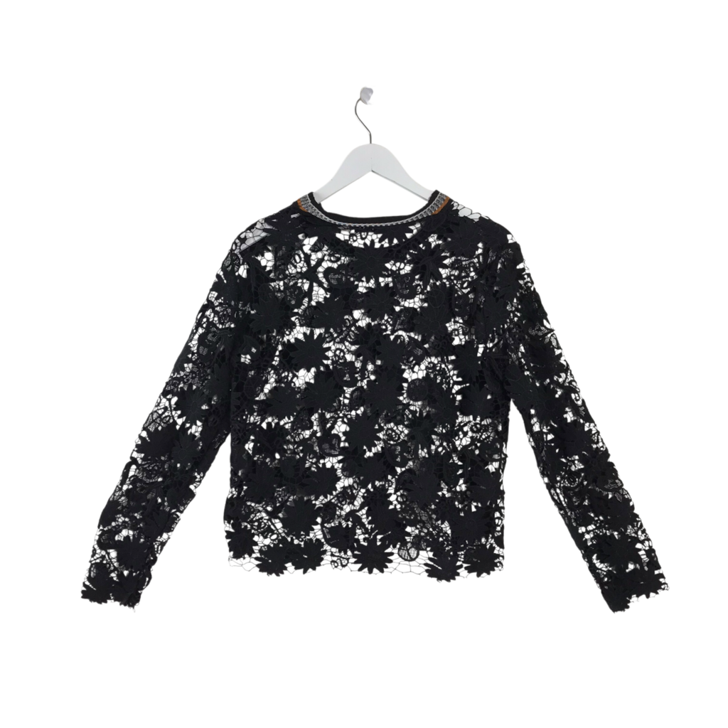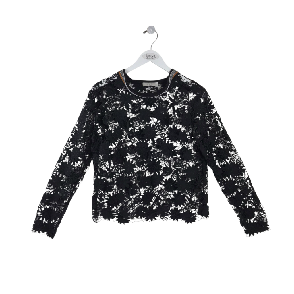 SANDRO LACE LONG SLEEVE DESIGNER TOP BLACK MEDIUM