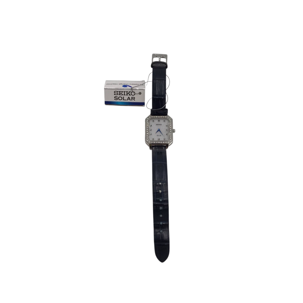 SEIKO RET$325 SOLAR RHINESTONES WATCH SILVER BLACK