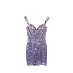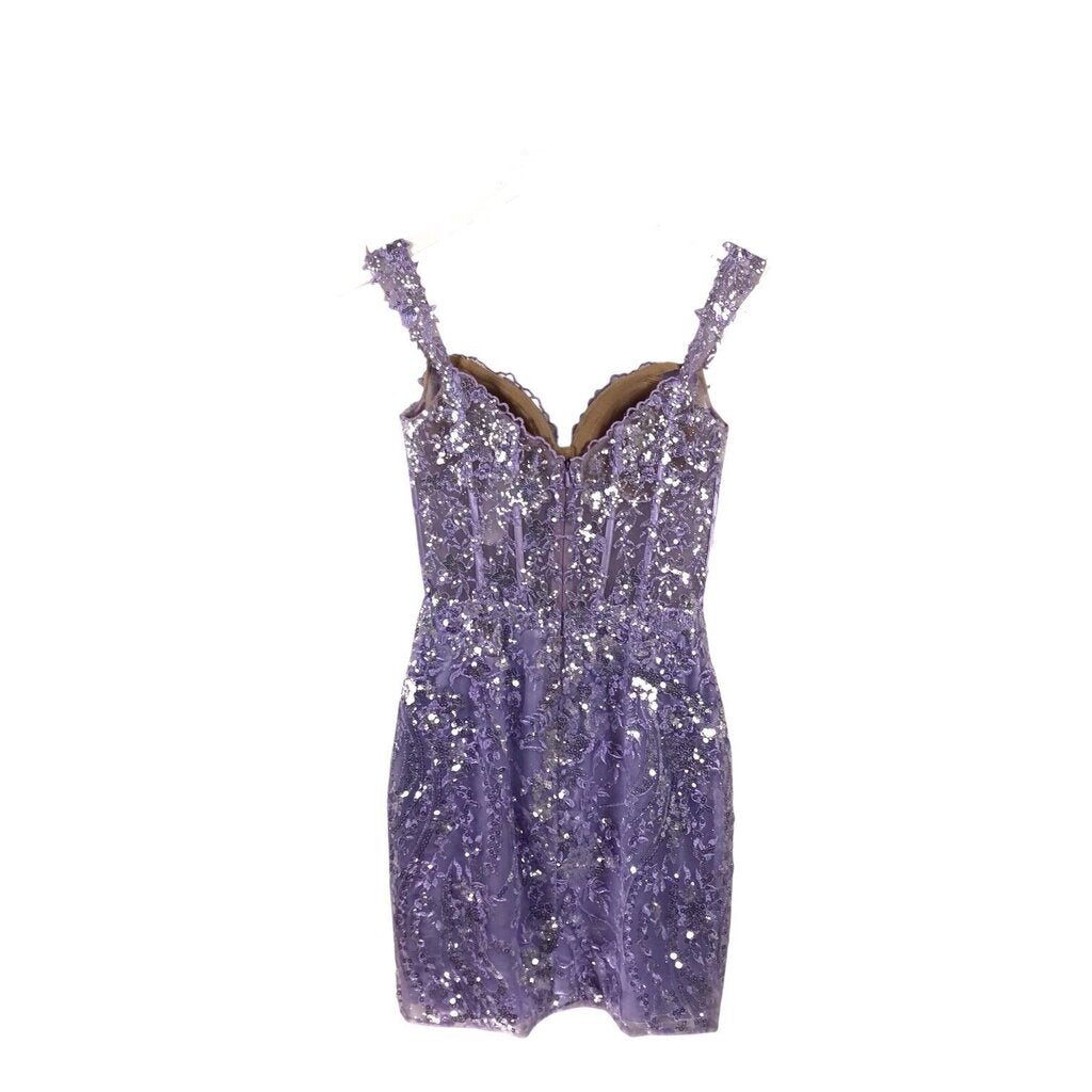 SHERRI HILL EMBROIDERED SEQUIN MINI FORMAL LAVENDER 0