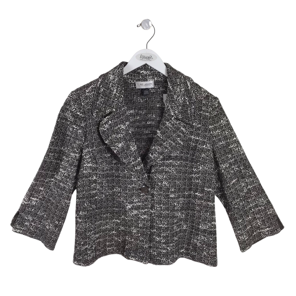 ST JOHN 3/4 SLEEVE DESIGNER BLAZER BROWN WHITE 12