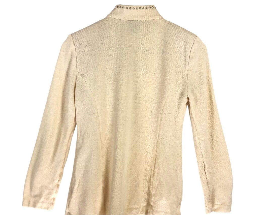 ST JOHN COLLECTION KNIT STUDS LONG SLEEVE DESIGNER CARDIGAN CREAM 4