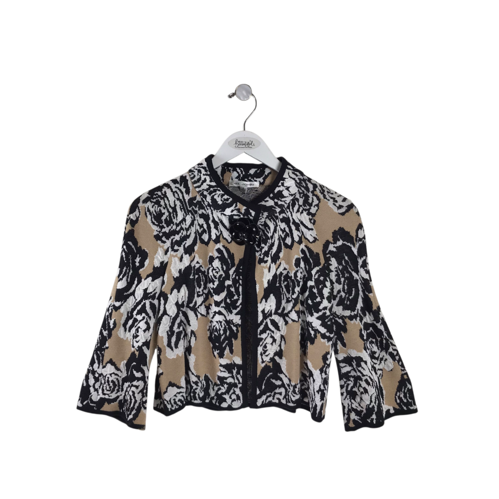 ST JOHN FLORAL 3/4 SLEEVE DESIGNER CARDIGAN BLACK BEIGE 2