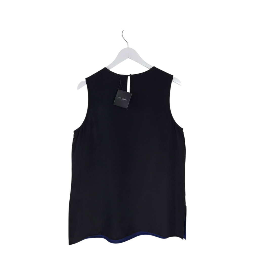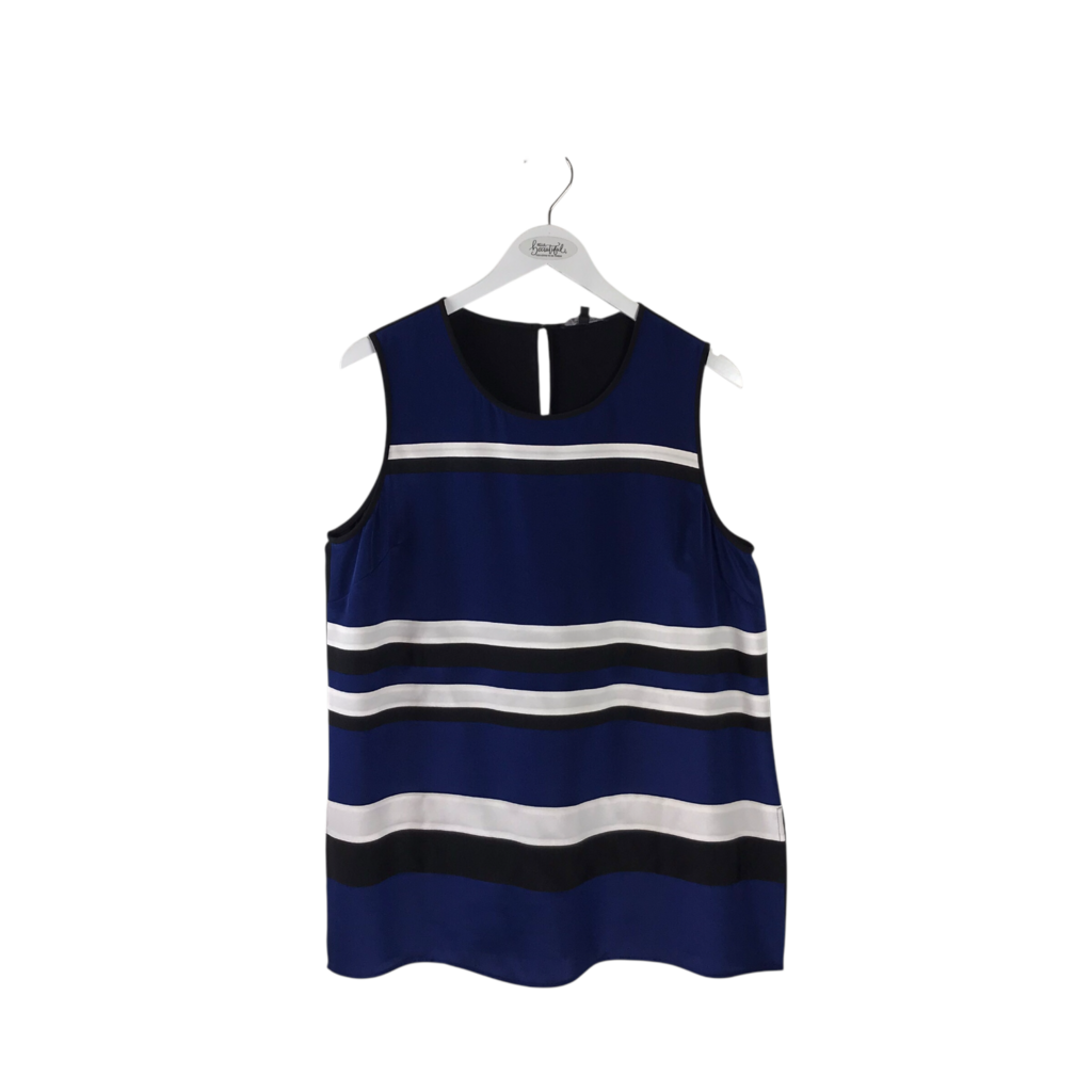ST JOHN NWT$495 SLEEVELESS STRIPE DESIGNER DRESS NAVY BLACK LARGE