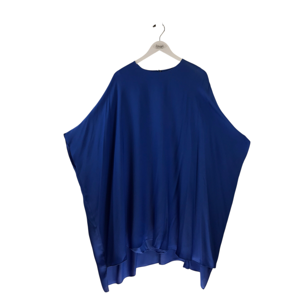 ST JOHN RET$995 SILK PONCHO STYLE DESIGNER DRESS BLUE MEDIUM