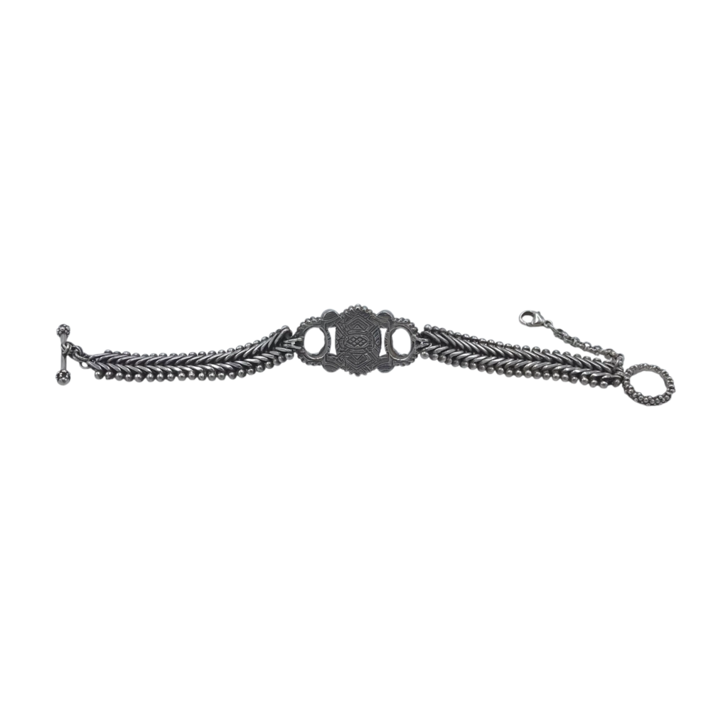 STEPHEN D WECK CARVED STONE TOGGLE BRACELET SILVER WHITE