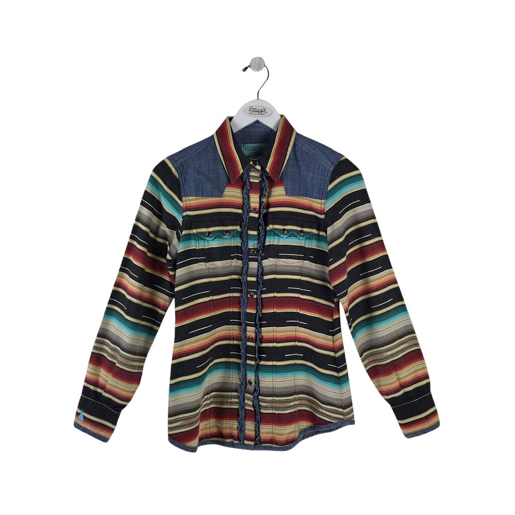TASHA POLIZZI RET$240 STRIPE LONG SLEEVE DESIGNER BLOUSE DENIM MULTI SMALL