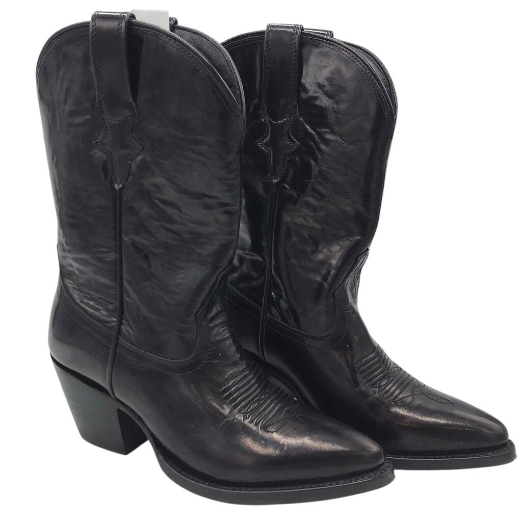 TECOVAS RET$375 PATENT WESTERN POINT TOE BOOTS BLACK 8