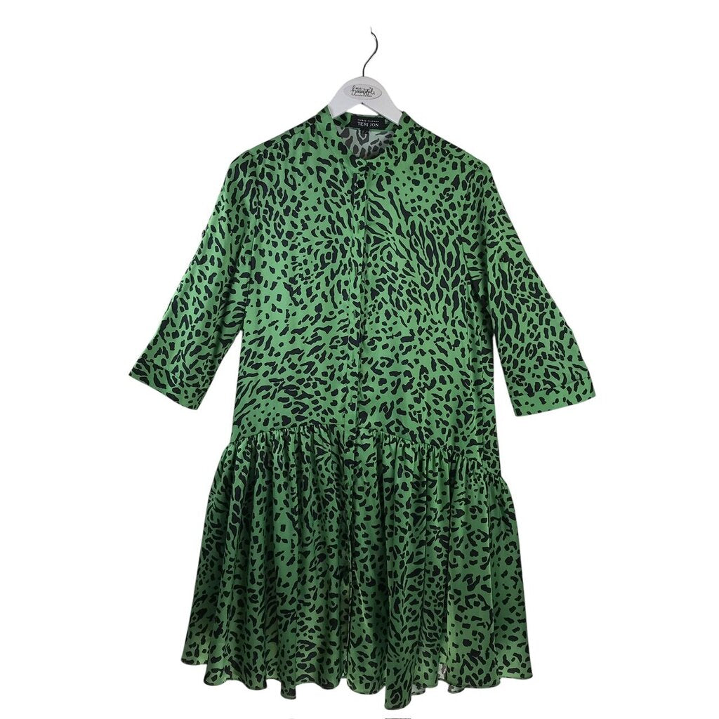 TERI JON ANIMAL PRINT DESIGNER DRESS GREEN BLACK 2
