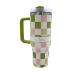 THE DARLING EFFECT CHECK TUMBLER WOMEN'S ACCESSORIES GREEN PINK 40 OZ