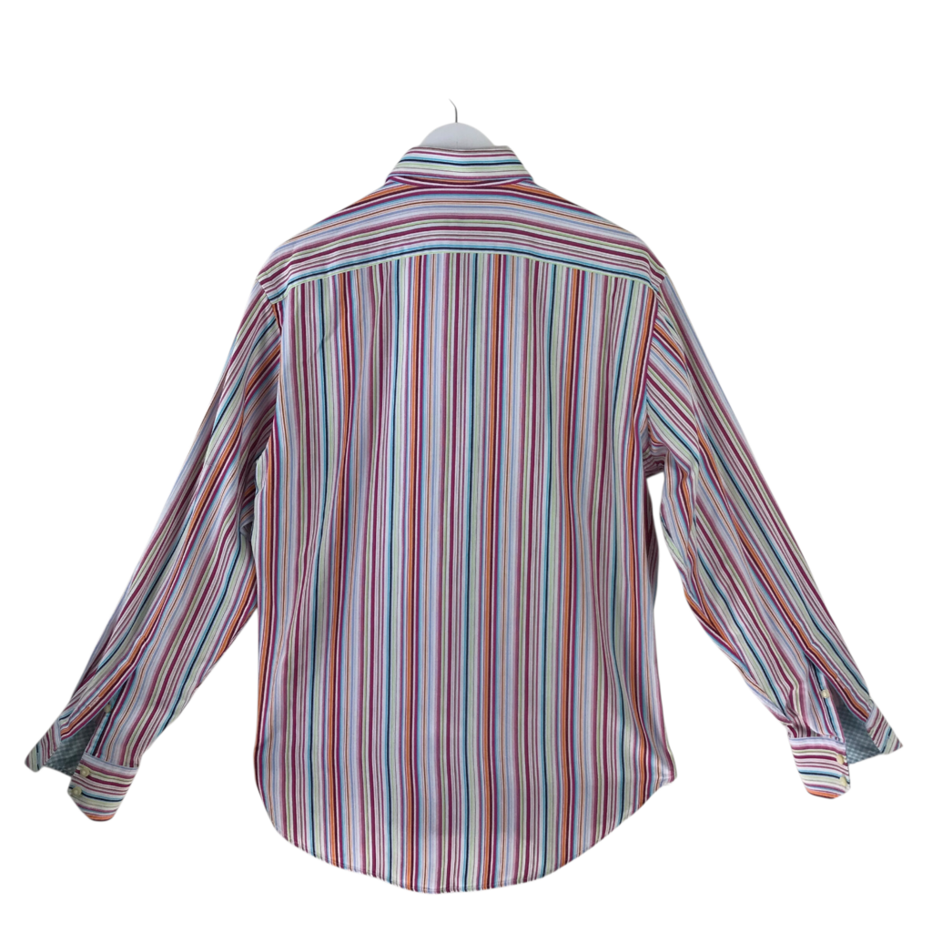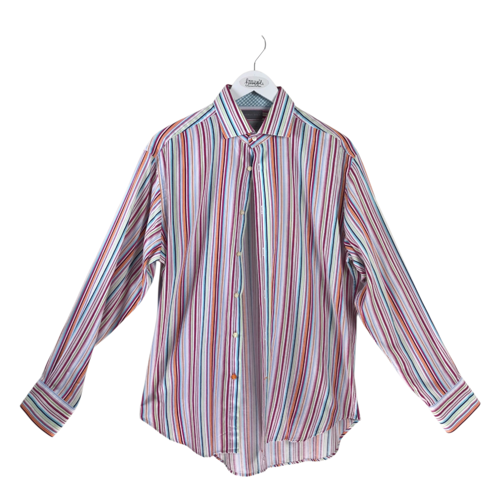 THOMAS DEAN STRIPE LONG SLEEVE MEN SHIRT MAROON LIME MEDIUM