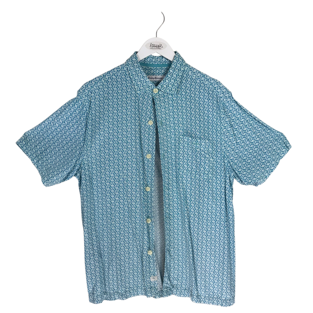 TOMMY BAHAMA PRINT SHORT SLEEVE MEN SHIRT BLUE WHITE MEDIUM