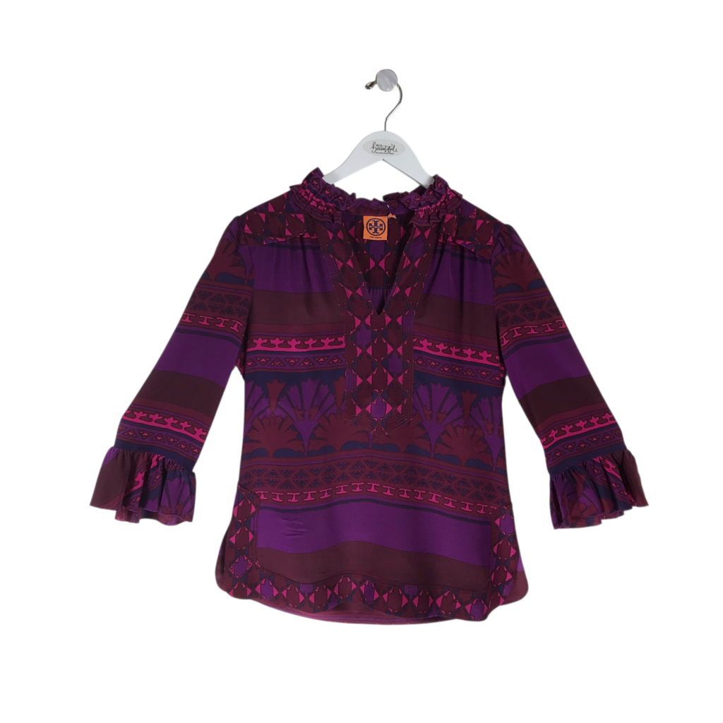 TORY BURCH 100% SILK FLARE SLEEVE DESIGNER TOP PURPLE PINK 6