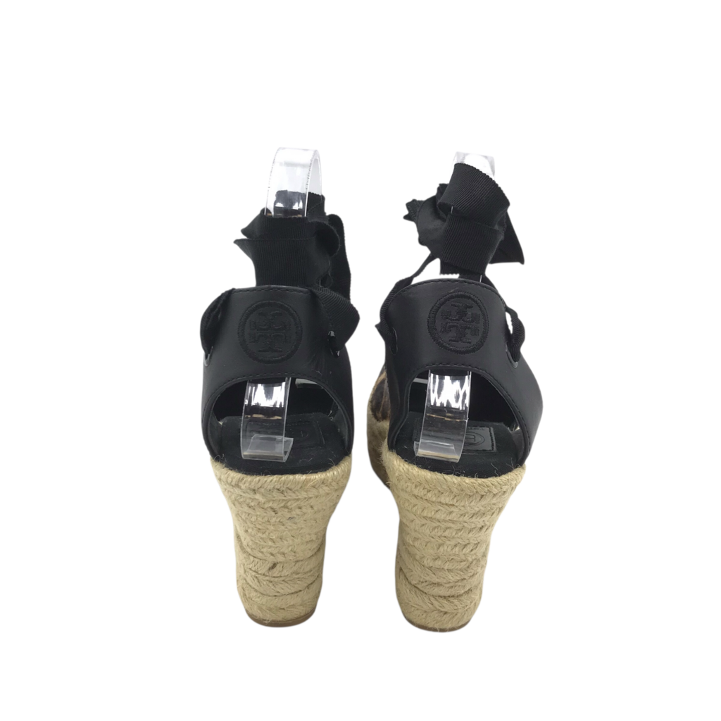 TORY BURCH ANIMAL PRINT ESPADRILLE WEDGE DESIGNER SHOES TAN BLACK 7.5M
