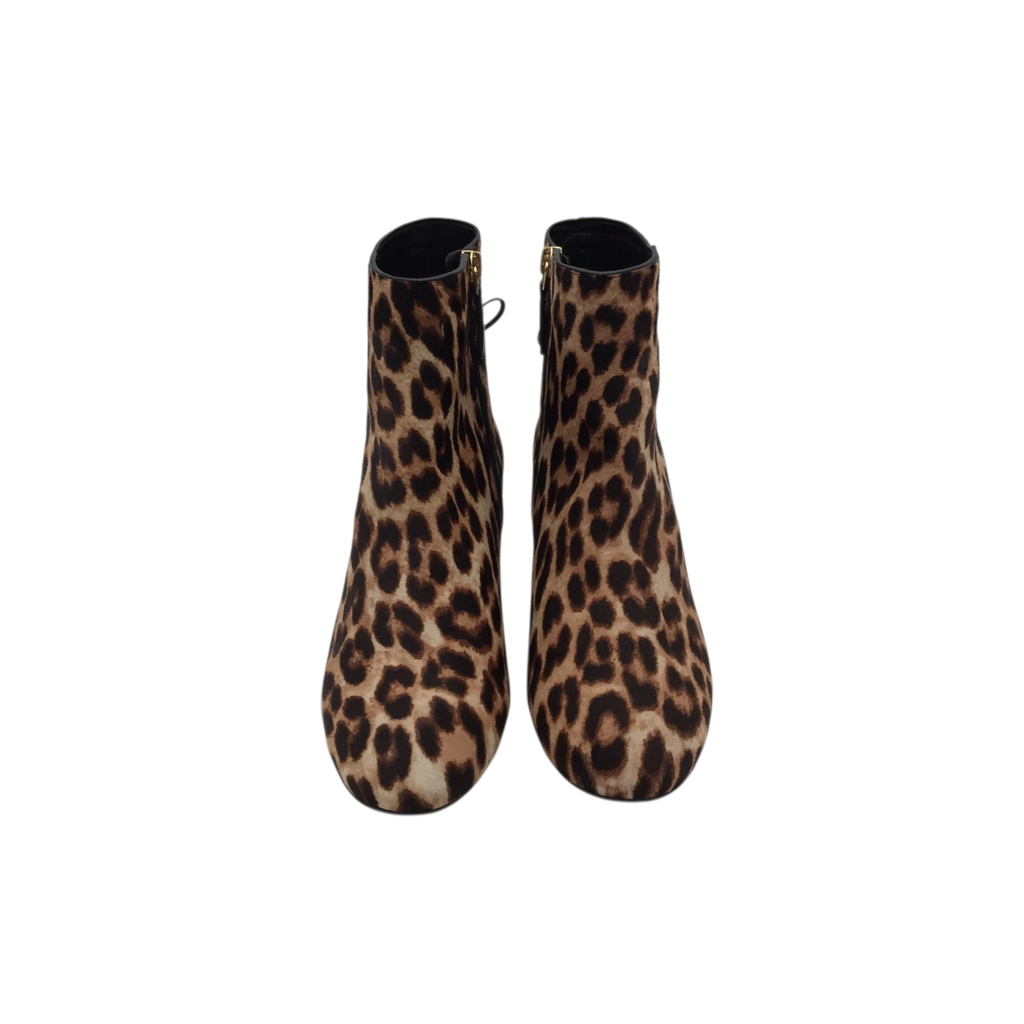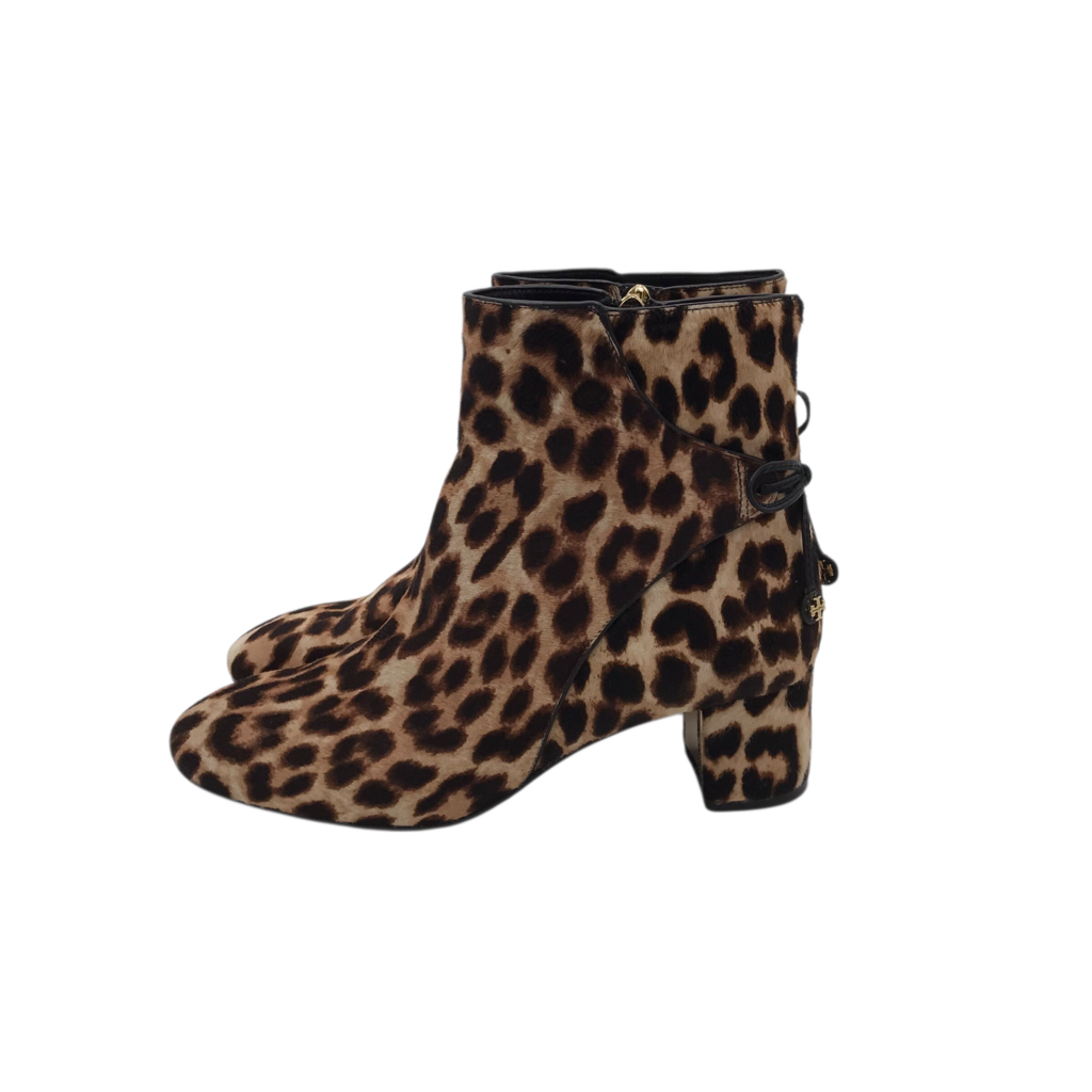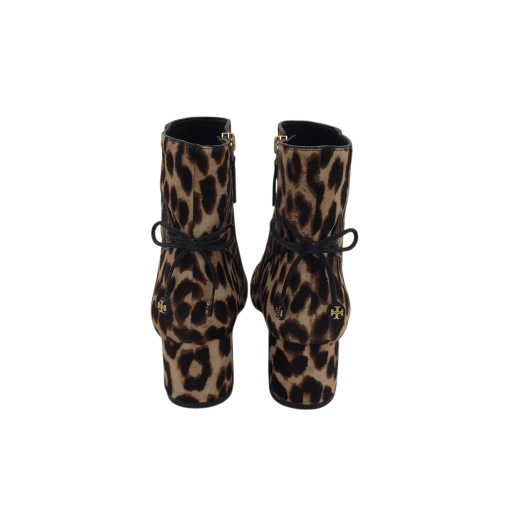 TORY BURCH CALF HAIR ANIMAL PRINT ANKLE BOOTIE DESIGNER BOOTS CREAM BLACK 7.5