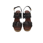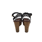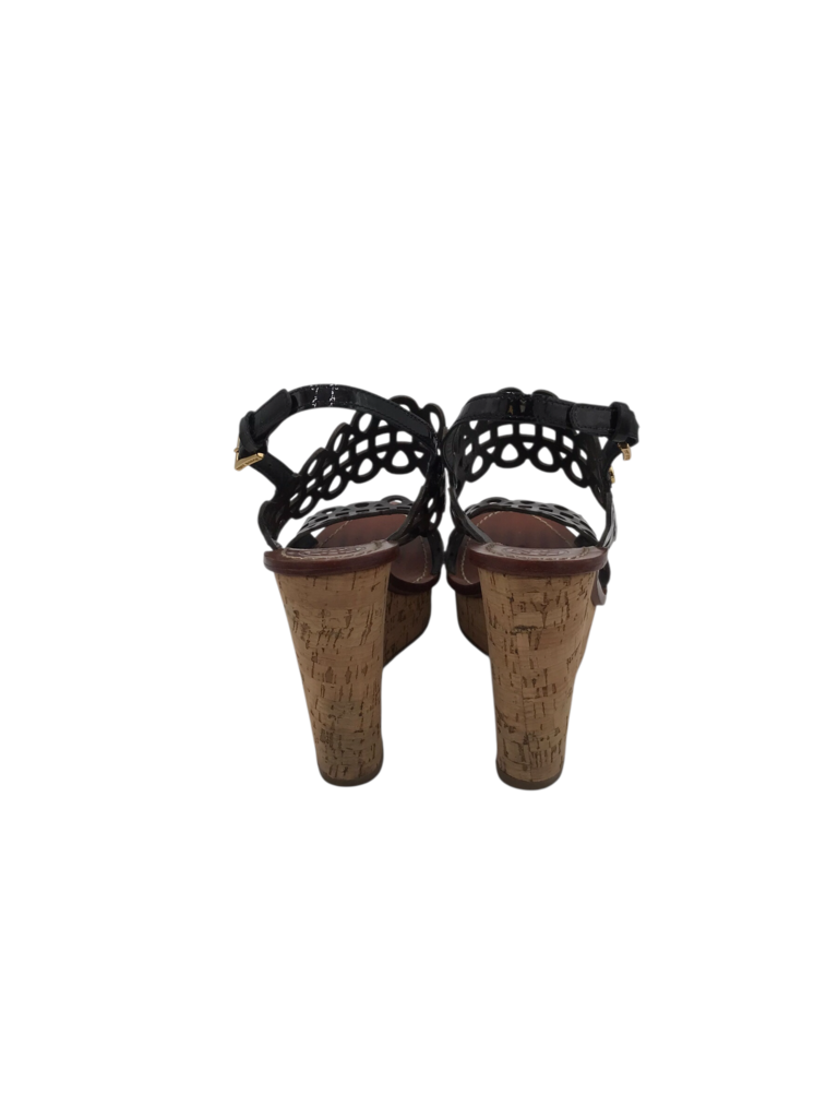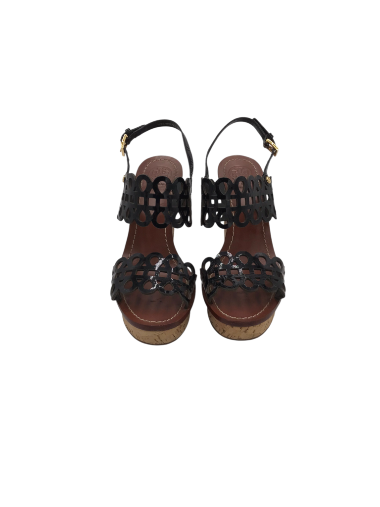 TORY BURCH CORK WEDGE SANDAL SHOES BLACK 7M