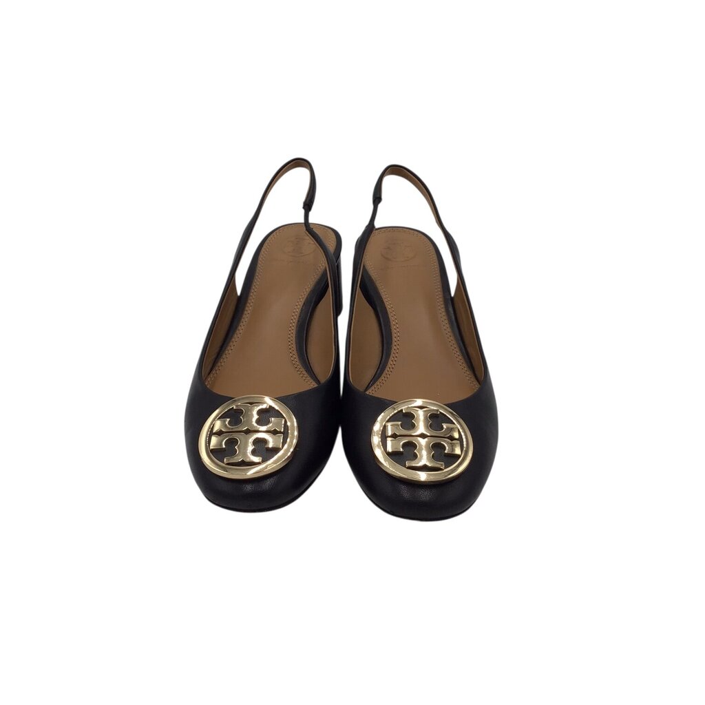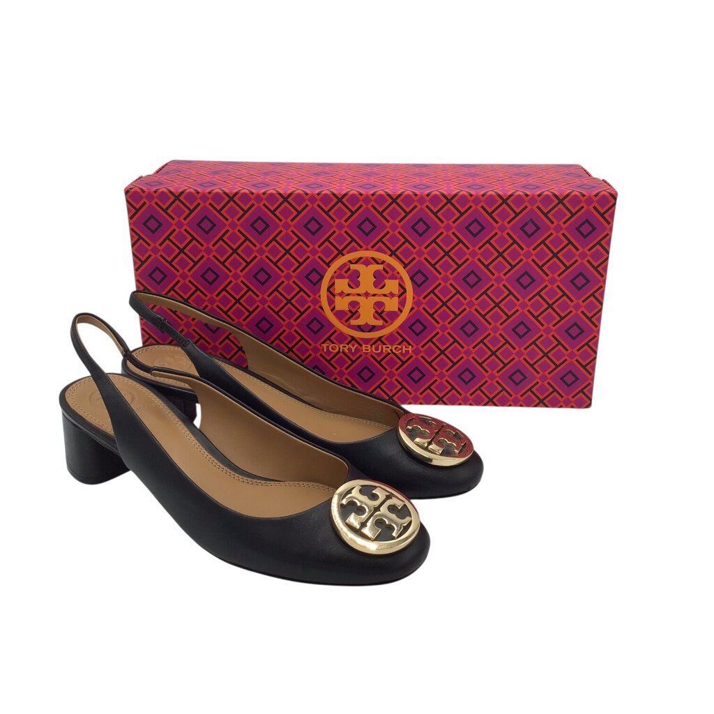 TORY BURCH LOGO SLINGBACK PUMP DESIGNER SHOES BLACK