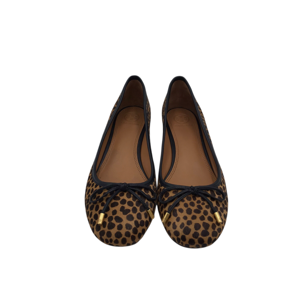 TORY BURCH PONYHAIR BALLET FLAT DESIGNER SHOES BROWN BLACK 9