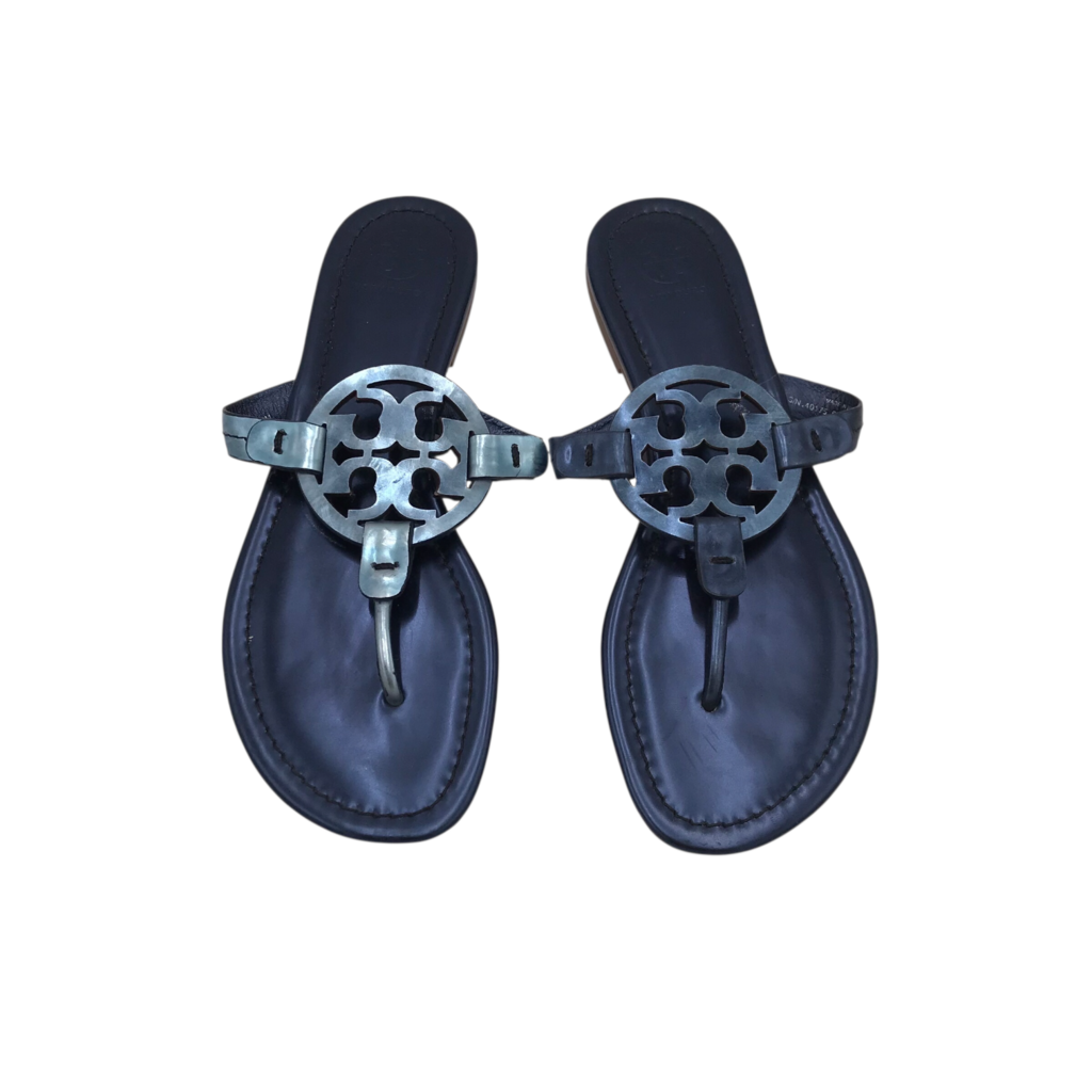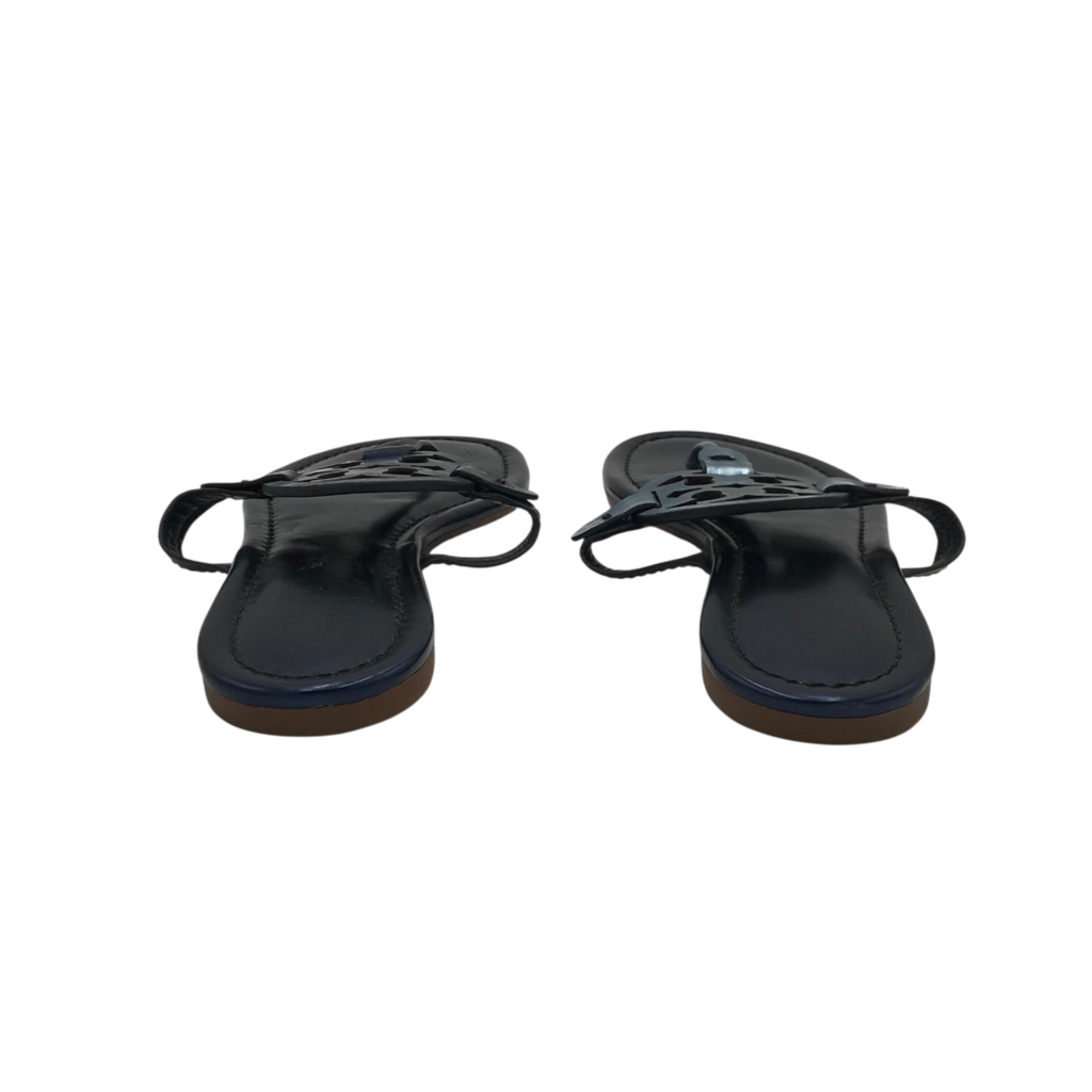 TORY BURCH RET$198 "MILLER" LEATHER FLAT SANDAL SHOES NAVY 8