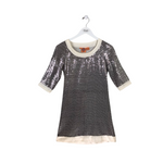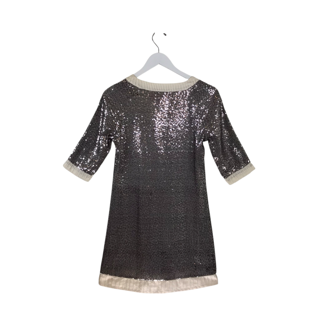 TORY BURCH SEQUIN 3/4 SLEEVE DESIGNER DRESS SILVER BROWN 2