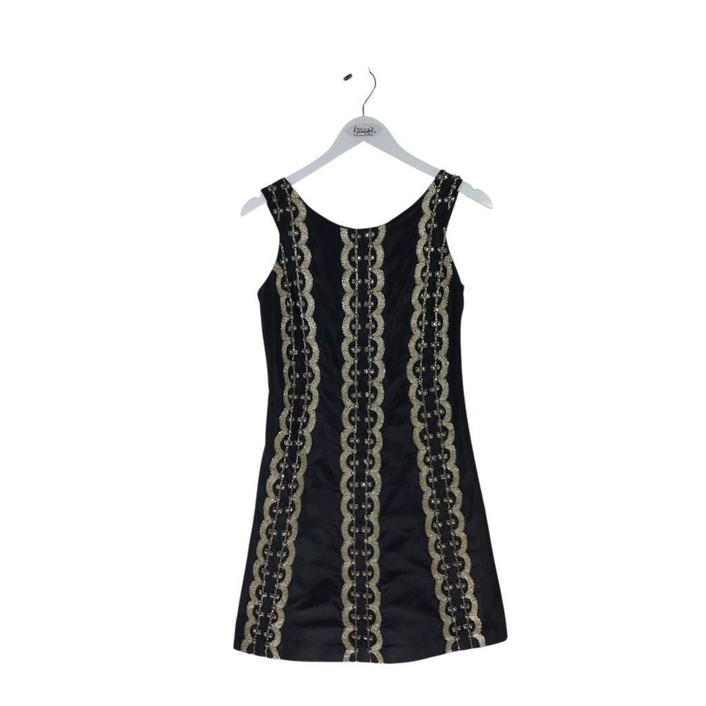 TRACY REESE SEQUIN SLEEVELESS DESIGNER DRESS BLACK BEIGE 2