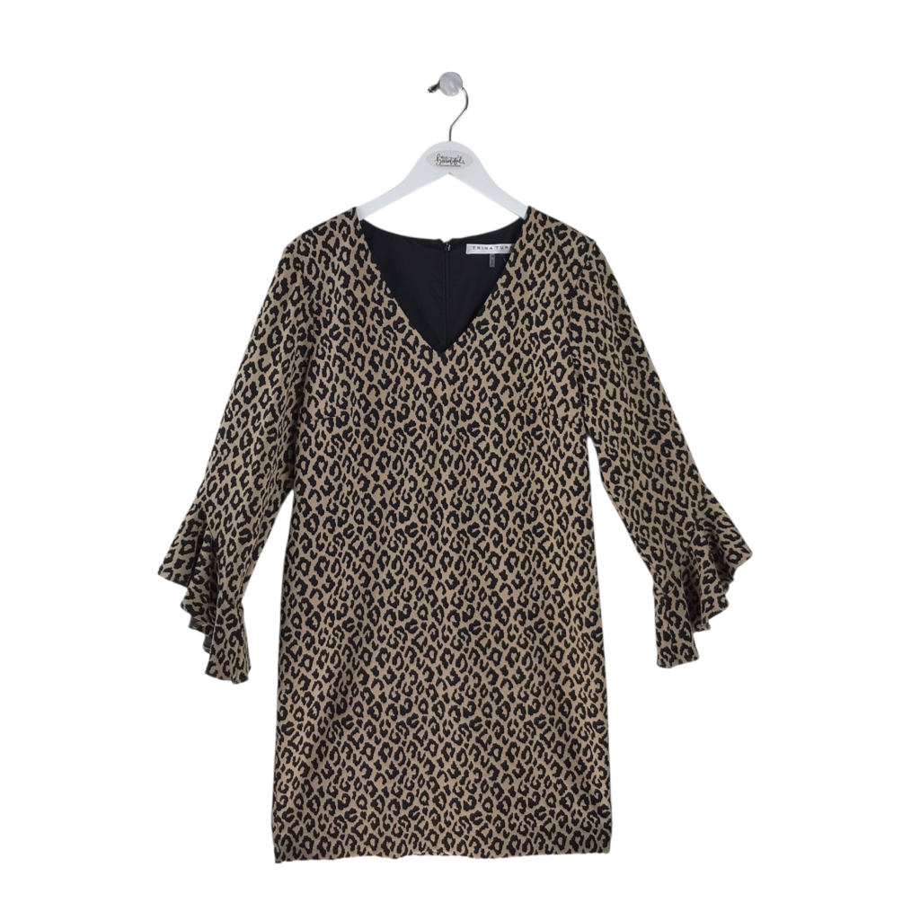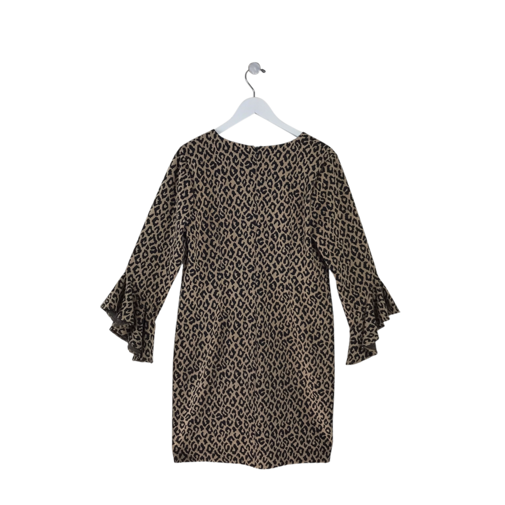 TRINA TURK ANIMAL PRINT LONG SLEEVE DESIGNER DRESS BEIGE BLACK 10
