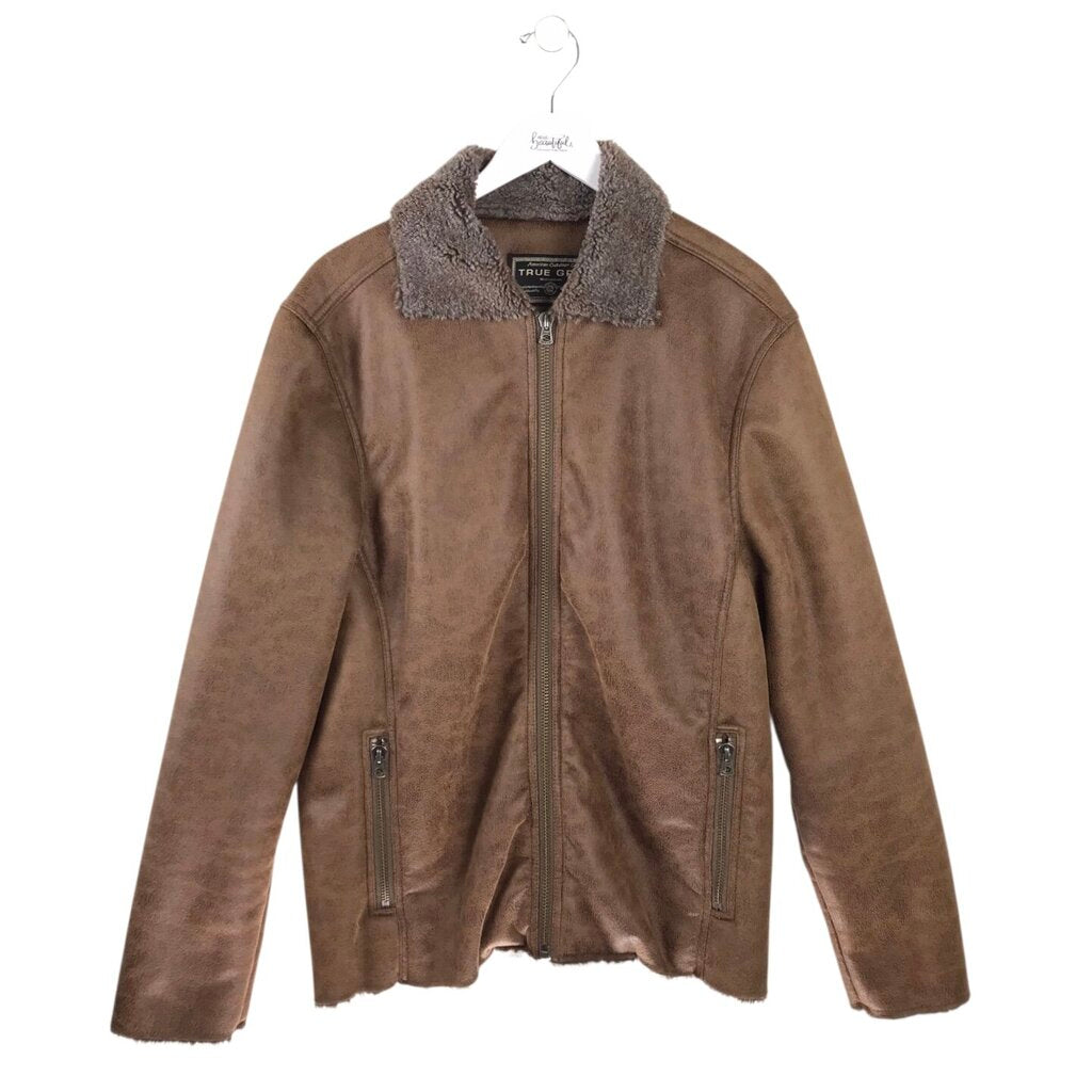 TRUE GRIT FAUX SHERPA LINED MEN JACKET BROWN MEDIUM