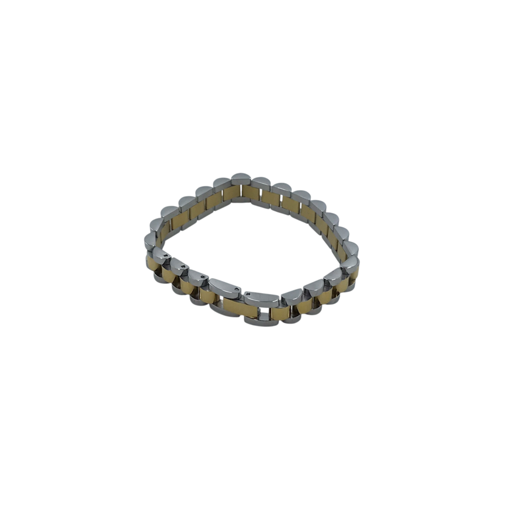 TWO TONE WATERPROOF CHAIN BRACELET STAINLESS STEEL/GOLD PLATE 18CM