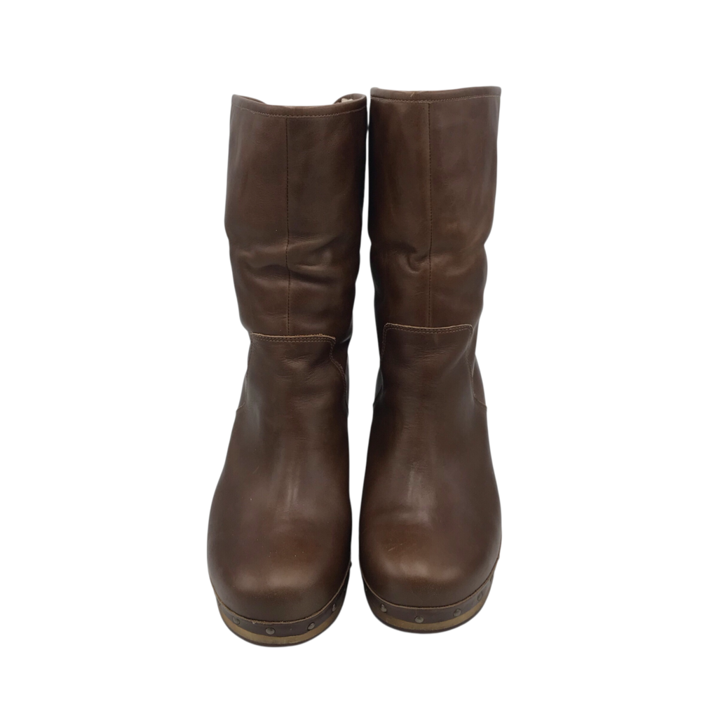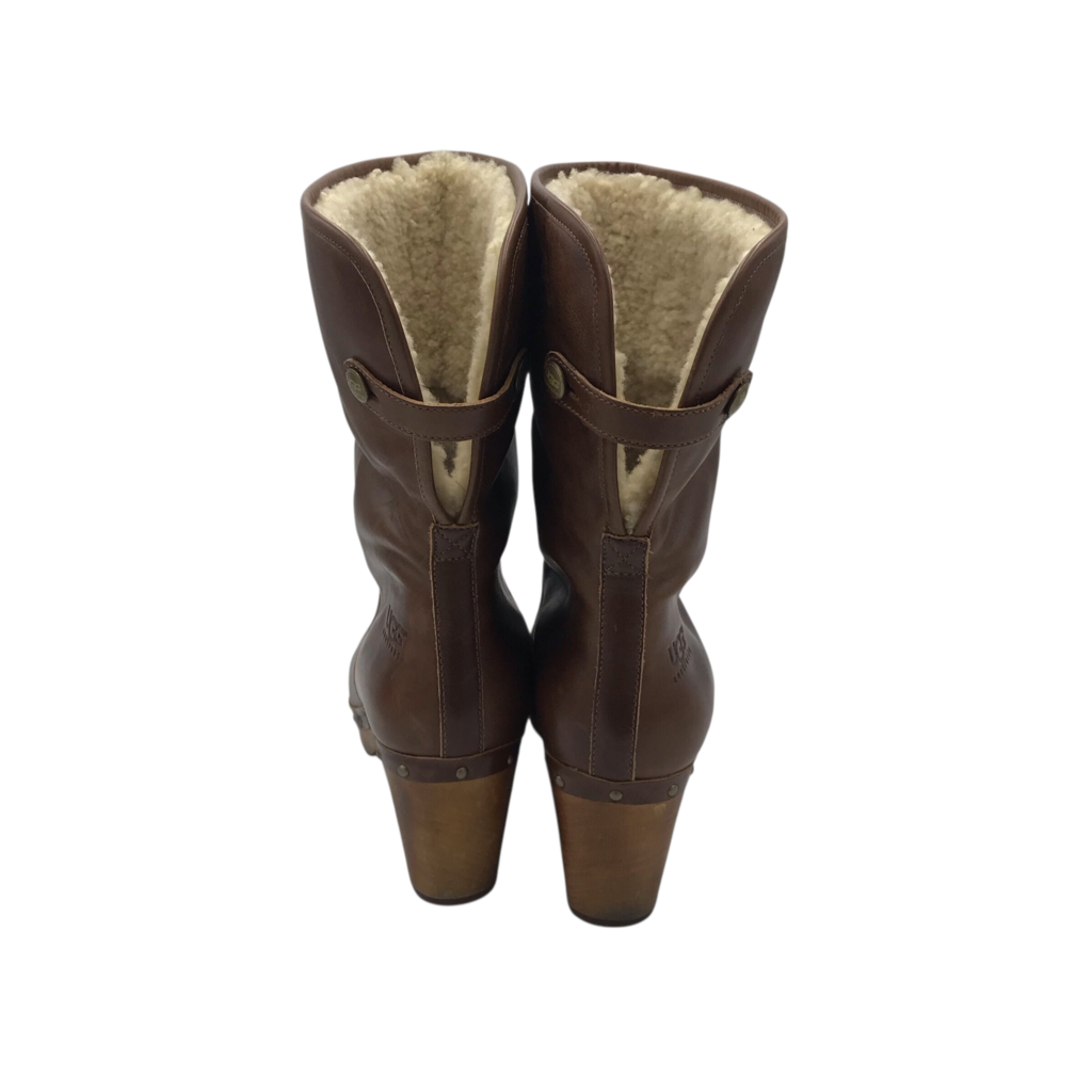 UGG SHERPA LINED HEEL BOOTS BROWN 10