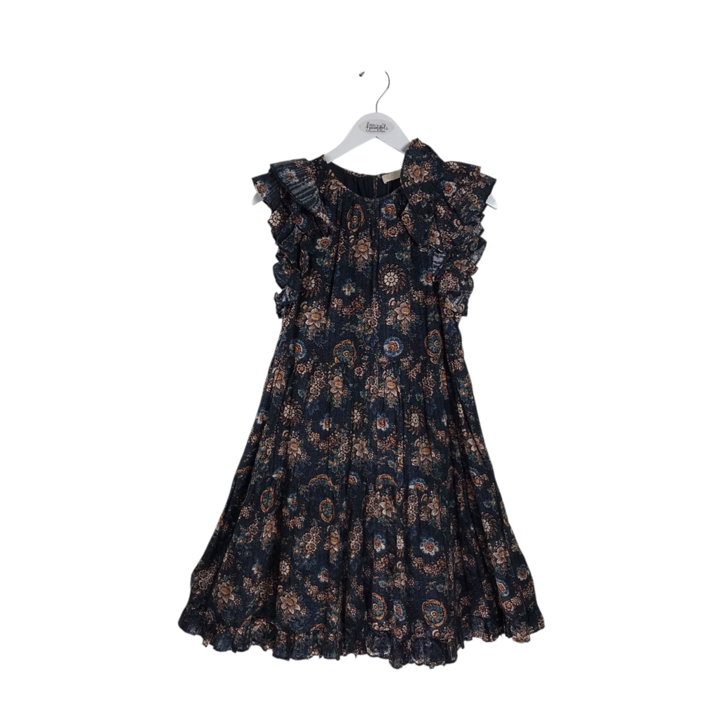 ULLA JOHNSON RET$375 FLORAL RUFFLE FLUTTER SLEEVE DESIGNER DRESS NAVY CREAM 4