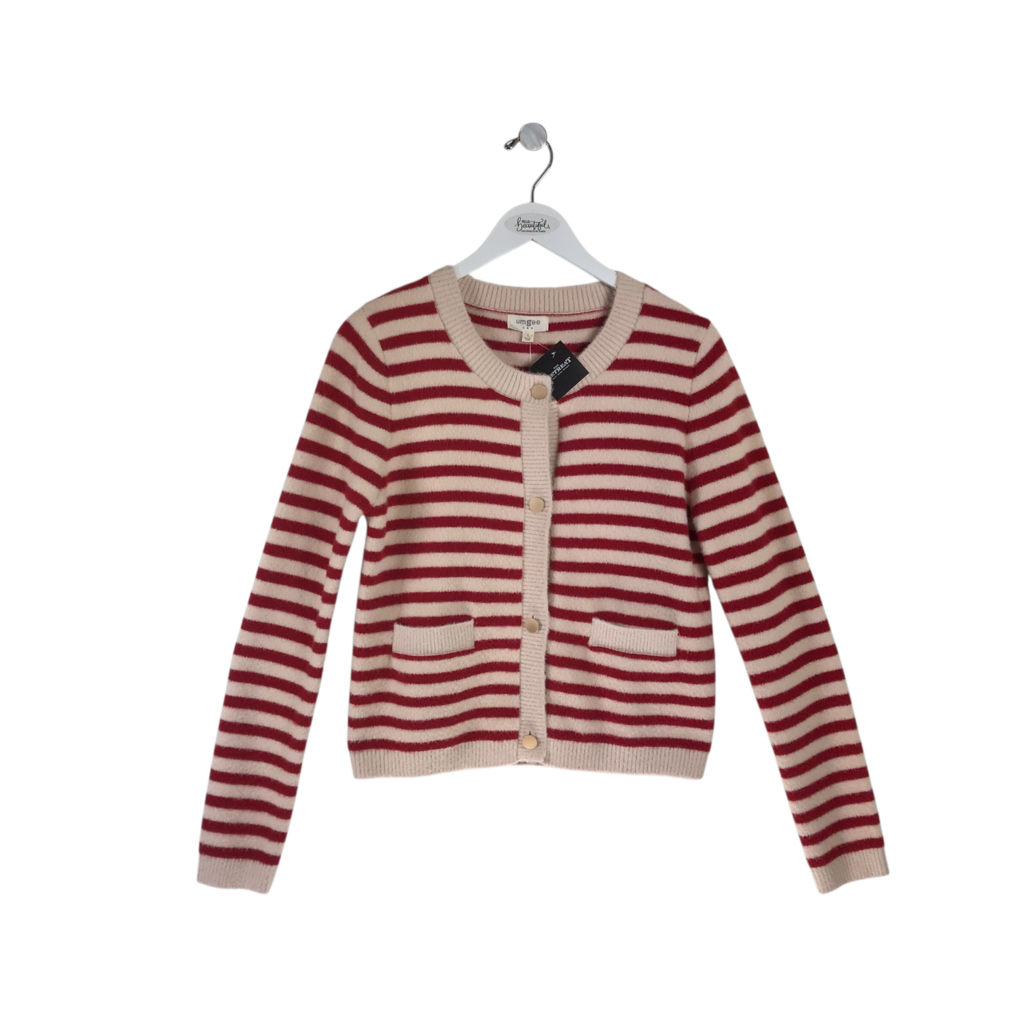 UMGEE NWT$58 STRIPE BUTTON CARDIGAN CREAM RED SMALL