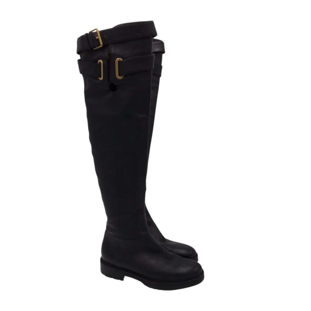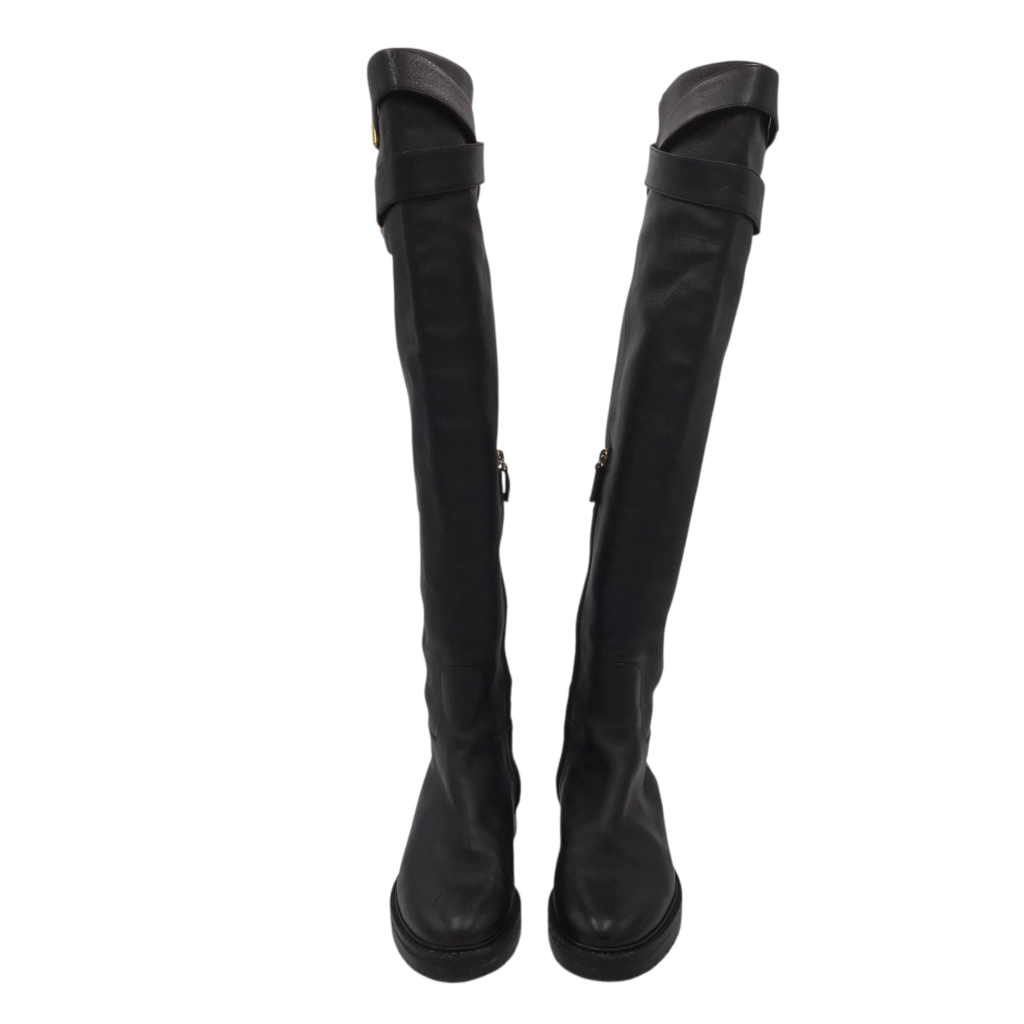 VALENTINO LEATHER KNEE HIGH LUXE BOOTS BLACK 38