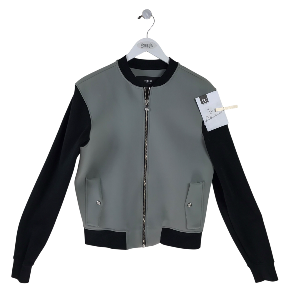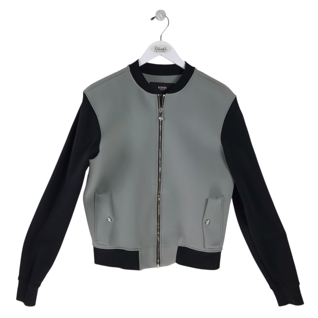 VERSACE AS IS RET$478 NEOPRENE EMBROIDERED LION BOMBER JACKET MEN JACKET GREY BLACK 44