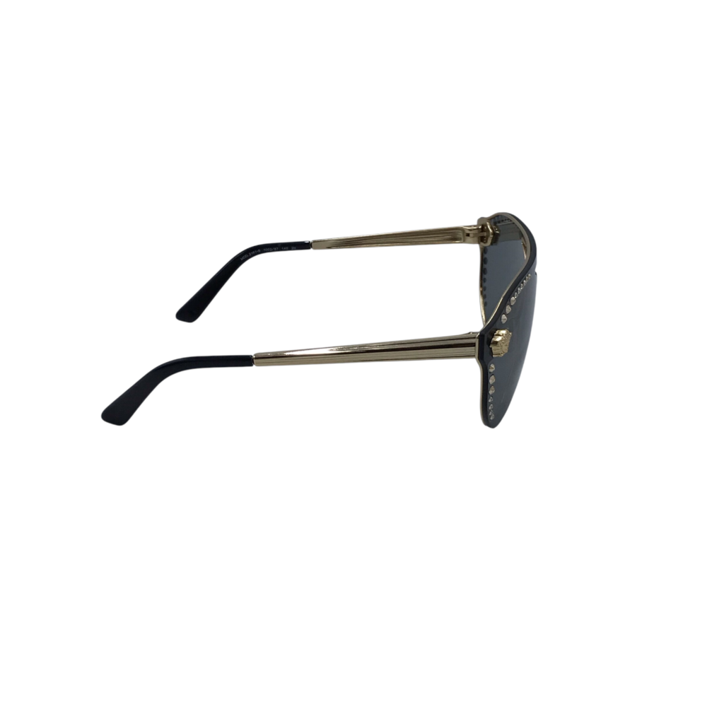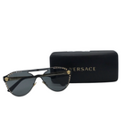 VERSACE CRYSTAL STUDDED MEDUSA AVAITOR W/CASE LUXE SUNGLASSES BLACK GOLD