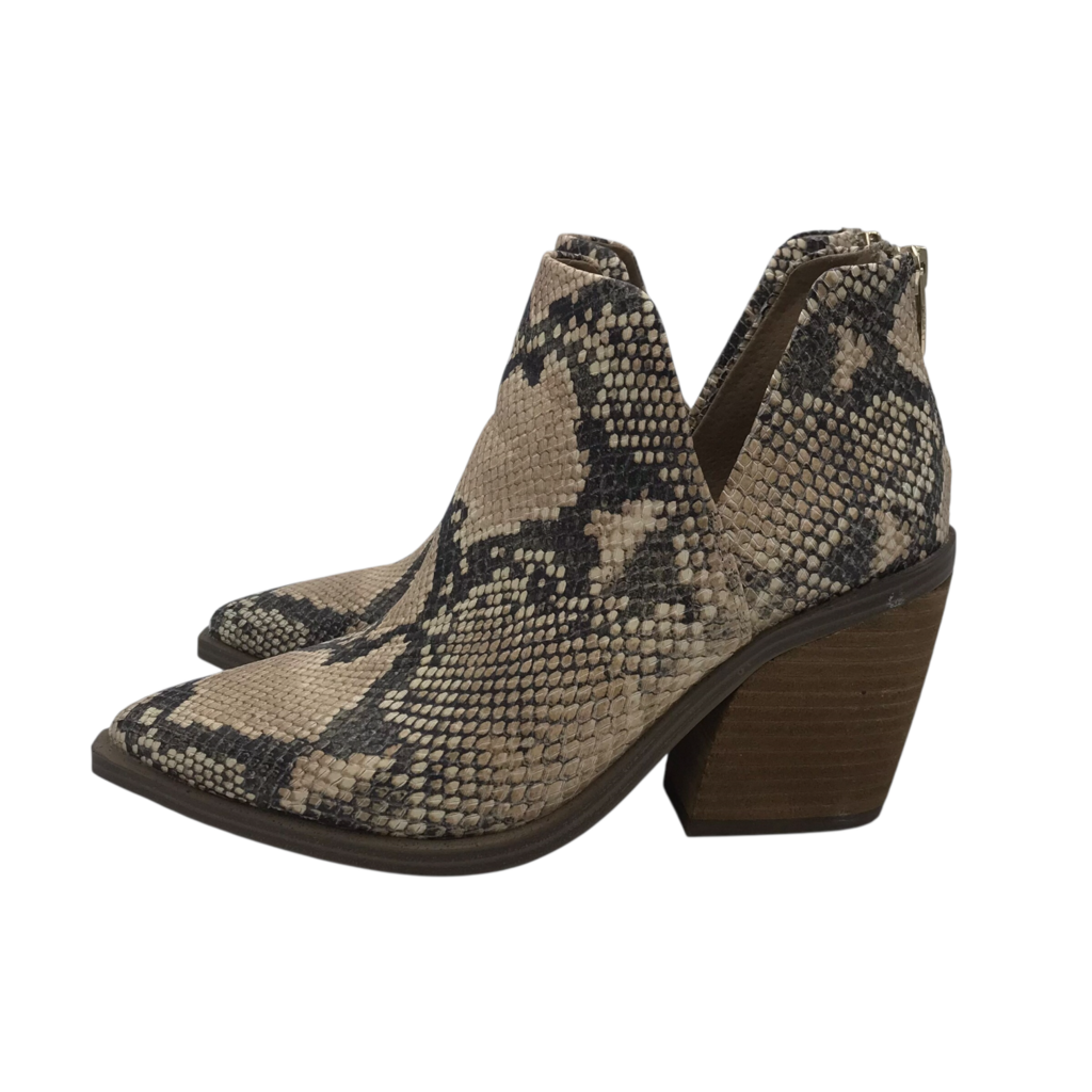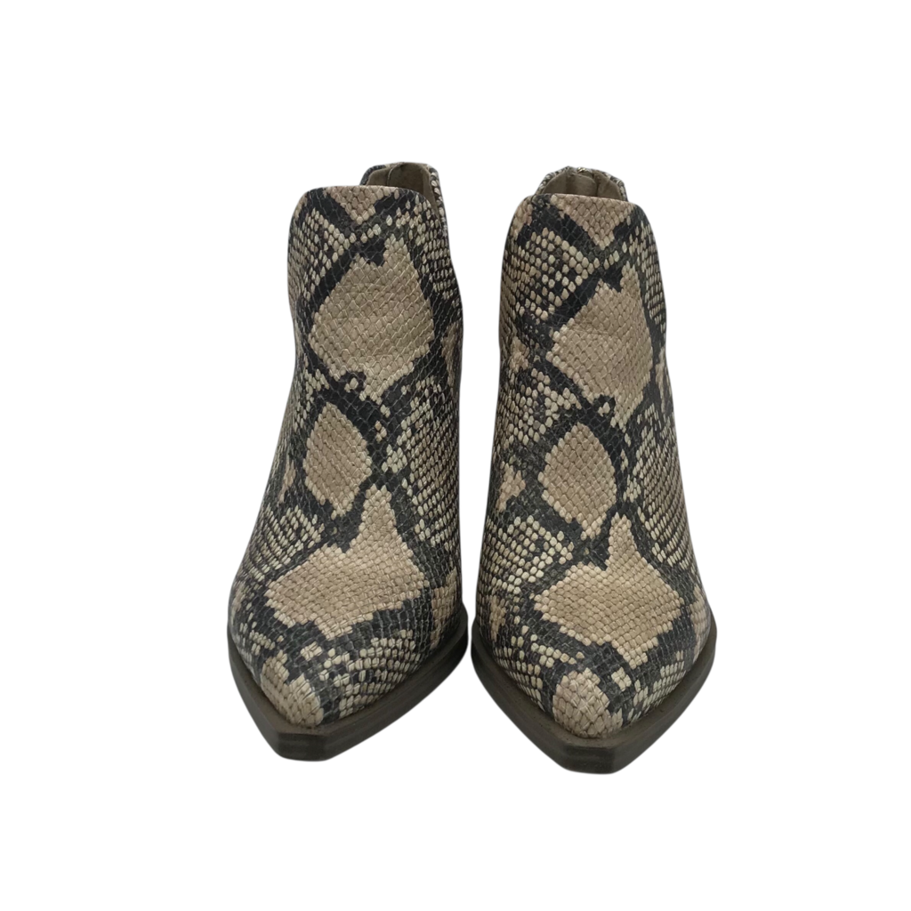 VINCE CAMUTO SNAKE PRINT BOOTIE BOOTS BLACK BROWN 8M