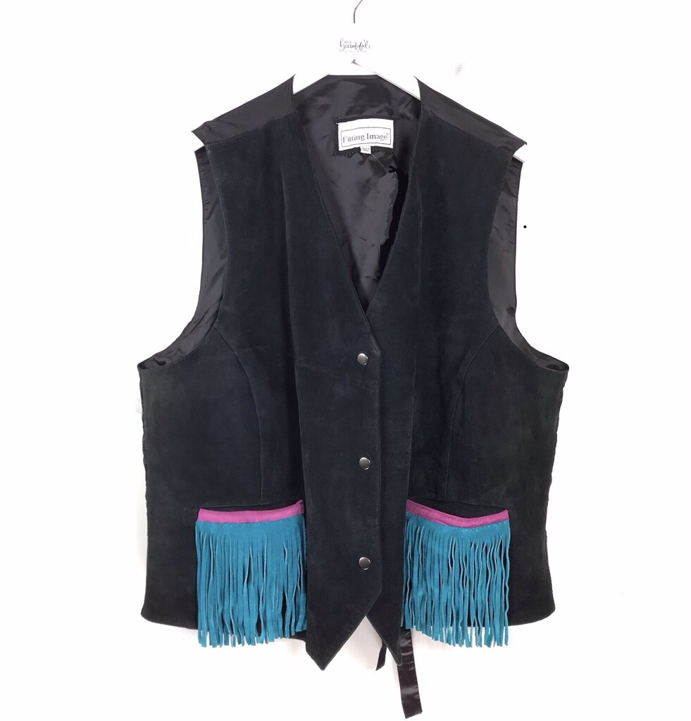 VTG SUEDE BUTTON VEST BLACK BLUE 22/24