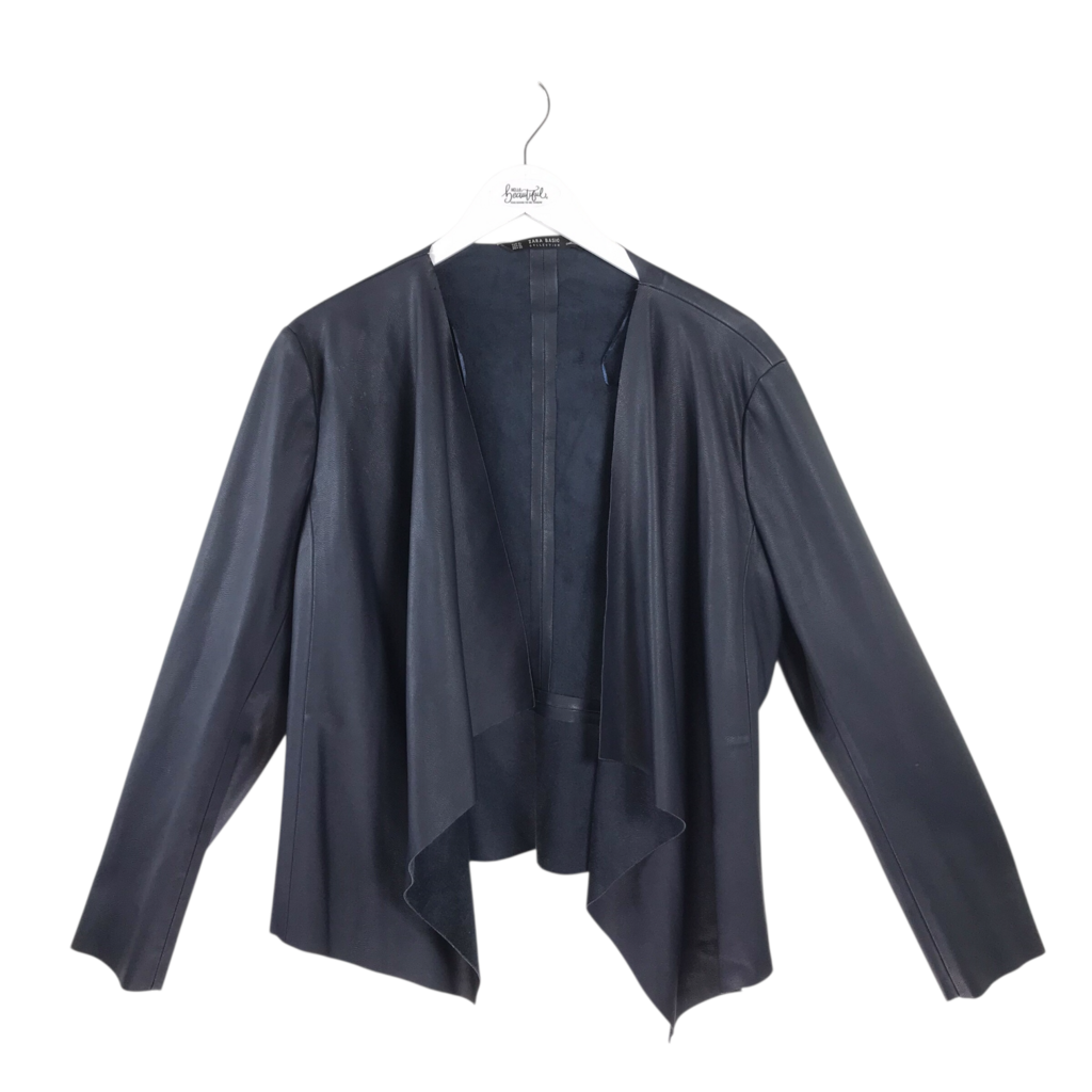 ZARA BASIC FAUX LEATHER DRAPE BLAZER NAVY XLARGE